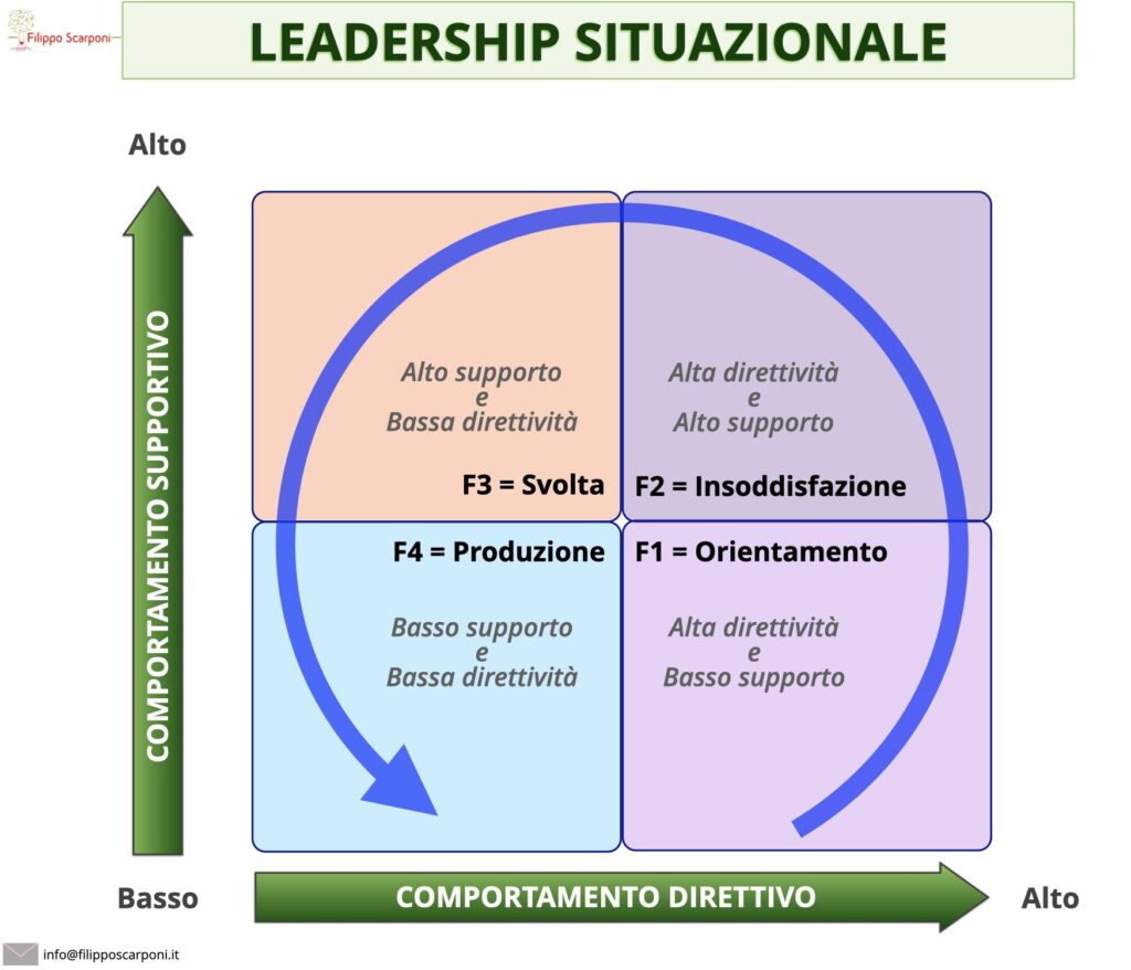 Infatti, in questo percorso si passa gradualmente dal bisogno di ricevere indicazioni direttive dal Leader (titolare, dirigente, manager, ecc.), attraverso la fase in cui si esprimono dubbi, incertezze e perfino critiche sulla gestione del gruppo, al momento in cui i collaboratori forniscono indicazioni strategiche e operative per una gestione migliore. A questo punto, per la Squadra, è auspicabile un “cambio di passo”, magari in autonomia, per riprendere il percorso comune.
